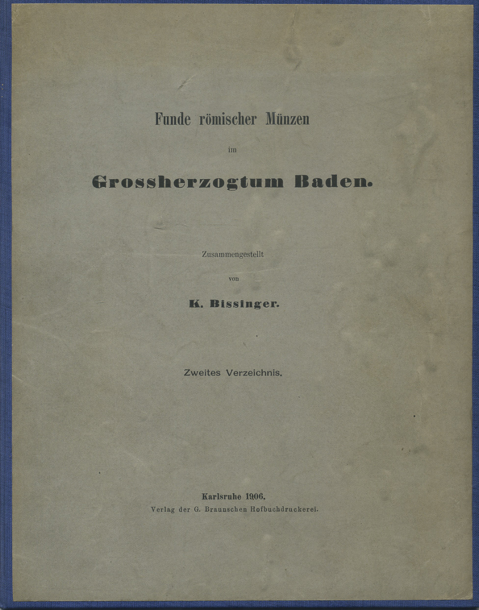 К. Биссингер Находки римских монет в великом княжестве Баден (язык: нем.) 1906 K. Bissinger, Funde Romisher munzen im grossherzogtum Baden, 23 страницы 00-01-04-02