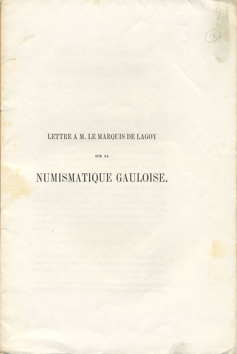 Монеты галлов. Письмо маркизу де Лагою. 1857 lettre a m. le Marquis de Lagoy sur la numismatique gauloise, 21 страница + 1 таблица 00-01-08-05