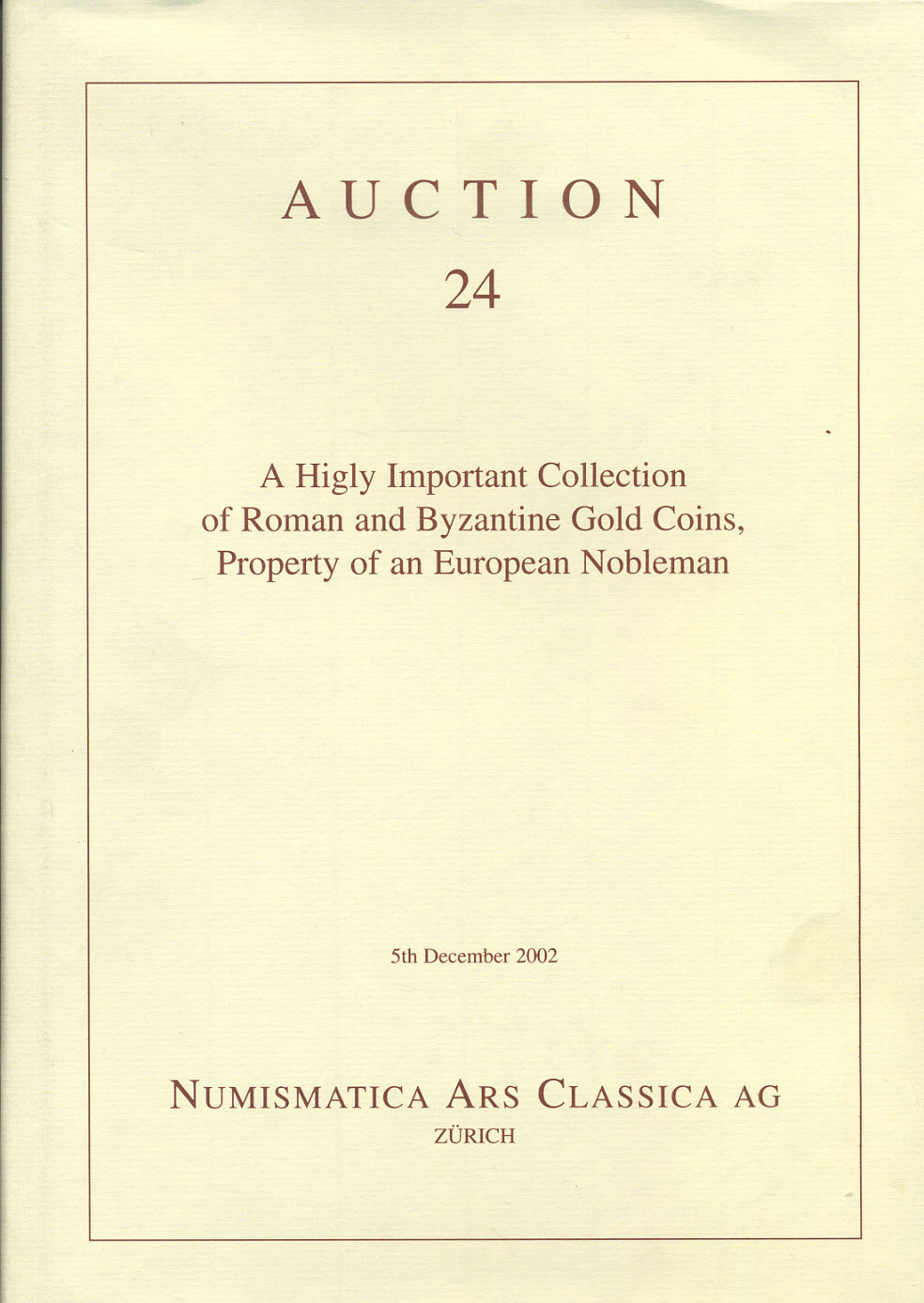 NAC АУКЦИОННЫЙ КАТАЛОГ №24. РИМСКИЕ И ВИЗАНТИЙСКИЕ ЗОЛОТЫЕ МОНЕТЫ ИЗ ЕВРОПЕЙСКИХ КОЛЛЕКЦИЙ 5 ДЕКАБРЯ 2002 Г. 2002 NUMISMATICA ARS CLASSICA AG, AUCTION 24, A HIGLY IMPORTANT COLLECTION OF ROMAN AND BYZANTINE GOLD COINS 00-01-15-01