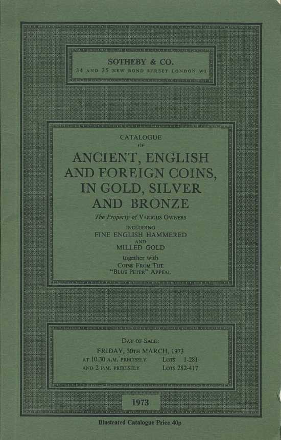 SOTHEBY & CO КАТАЛОГ АНТИЧНЫХ, АНГЛИЙСКИХ И ЗАРУБЕЖНЫХ МОНЕТ В ЗОЛОТЕ, СЕРЕБРЕ И БРОНЗЕ, ВКЛЮЧАЯ АНГЛИЙСКИЕ ЗОЛОТЫЕ МОНЕТЫ, ОТЧЕКАНЕННЫЕ ВРУЧНУЮ И НА СТАНКЕ, А ТАКЖЕ МОНЕТЫ ИЗ ПЕРЕДАЧИ 'BLUE PETER'. РАЗЛИЧНЫЕ ВЛАДЕЛЬЦЫ 26753 SOTHEBY & CO 00-01-11-10