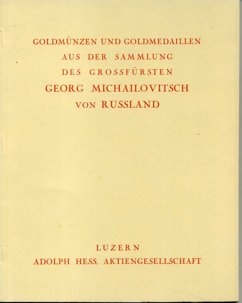 ----АУКЦИОННЫЙ КАТАЛОГ ФИРМА АДОЛЬФ ГЕСС 'РОССИЙСКИЕ ЗОЛОТЫЕ МОНЕТЫ И МЕДАЛИ ИЗ КОЛЛЕКЦИИ ВЕЛИКОГО КНЯЗЯ ГЕОРГИЯ МИХАЙЛОВИЧА', 25 ОКТЯБРЯ 1939. С ОРИГИНАЛЬНЫМ ЛИСТОМ ПРОХОДОВ. 00-01-02-14