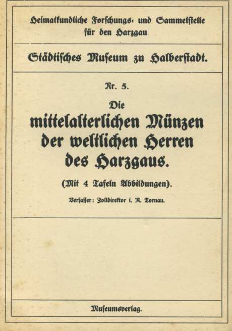 ГОРОДСКОЙ МУЗЕЙ ХАЛЬБЕРШТАДТА СРЕДНЕВЕКОВЫЕ МОНЕТЫ СВЕТСКИХ ДЖЕНТЛЬМЕНОВ ИЗ ГАРЦГАУСА (ЗЕМЛИ БЛИЗ ГАРЦА) ND STADTLICHES MUSEUM ZU HALBERSTADT, DIE MITTELALTRICHEN MUNZEN DER WELTLICHEN HERREN DES HARZGAUS, 16 СТРАНИЦ + ТАБЛИЦЫ С ИЛЛЮСТРАЦИЯМИ немецкий 00-