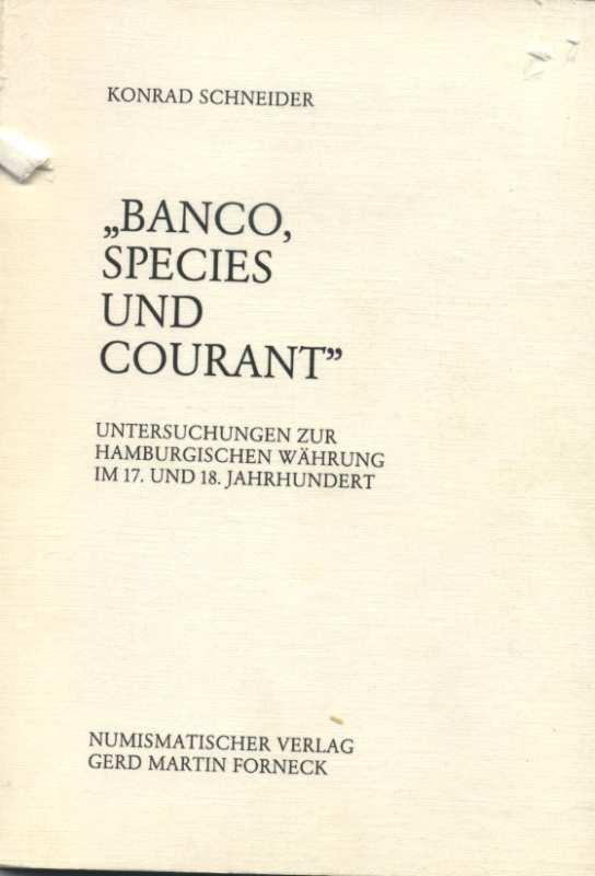 КОНРАД ШНАЙДЕР 'БАНКО, РАЗНОВИДНОСТИ И КУРАНТ' ИССЛЕДОВАНИЕ ВАЛЮТЫ ГАМБУРГА В XVII И XVIII ВЕКАХ 1986 KONRAD SCHNEIDER, 'BANCO, SPECIES UND COURANT', UNTERSUCHUNGEN ZUR HAMBURGISCHEN WAHRUNG IM 17. UND 18. JAHRHUNDERT, 136 СТРАНИЦ + ИЛЛЮСТРАЦИИ немецкий 0