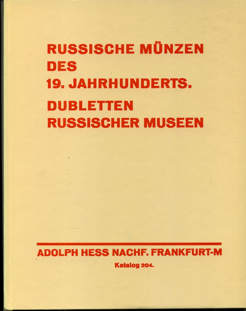 АУКЦИОННЫЙ КАТАЛОГ ФИРМА АДОЛЬФ ГЕСС 'РОССИЙСКИЕ МОНЕТЫ 19 ВЕКА. ДУБЛЕТЫ РУССКИХ МУЗЕЕВ', АУКЦИОН 204, 18 ФЕВРАЛЯ 1931 00-01-05-13