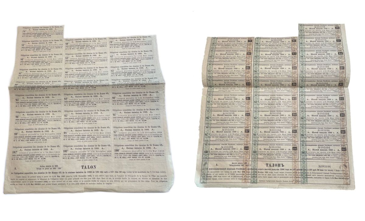 ----Россия купонный лист (25 купонов по 3 рубля 75 копеек) от 4% консолидированной облигации Российской железной дороги 1880 бумага 8805-12-1НовинкиАнтичность и раннее СредневековьеМонеты - ГерманияМонеты - ЕвропаМонеты - Австралия и ОкеанияМонеты - АзияМонеты - АмерикаМонеты - АфрикаМонеты - Россия, СССР, страны СНГ и БалтииБанкнотыАксессуары, ЛитератураОткрытки, карточкиАкции, облигацииЖетоны, Медали, ЗнакиМаркиКартины, декоративно-прикладное искусство