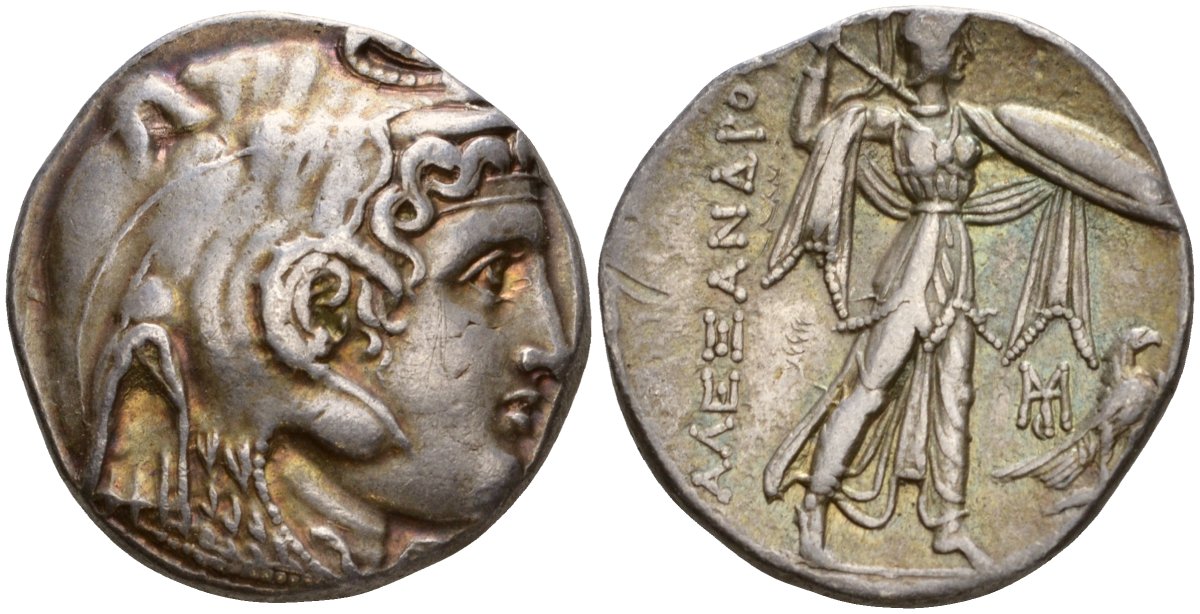 ----Государство Птолемеев тетрадрахма 312 - 301 гг. до н.э. Птолемей I Лагид, голова Александра Великого с рогом бога Аммона, в слоновьем скальпе/АЛЕКСАНДРА, Афина Алкидемос с копьем и щитом, справа орел, г. Александрия, 15,66 гр серебро 00-000-00
