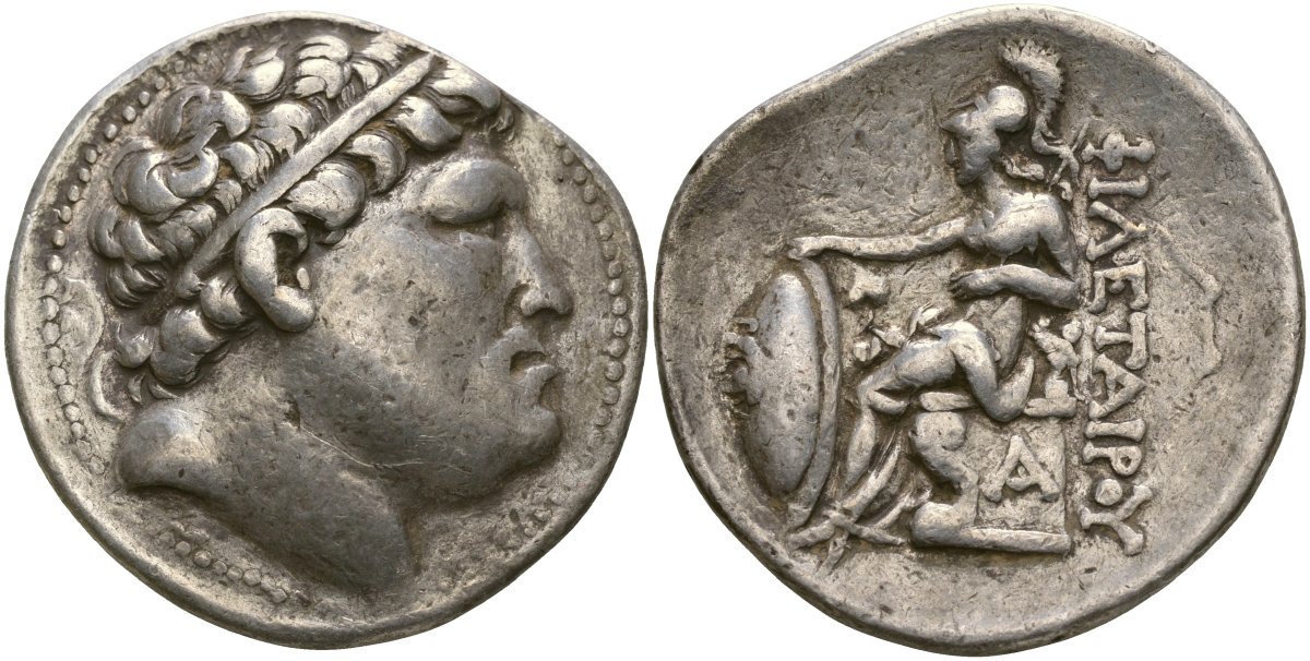 Пергамское Царство тетрадрахма 263 - 241 гг. до н.э. Эвмен I, голова Филетера, основателя династии Атталидов/Афина со щитом, 16,77 гр SNG France 1608 серебро 10-017-01