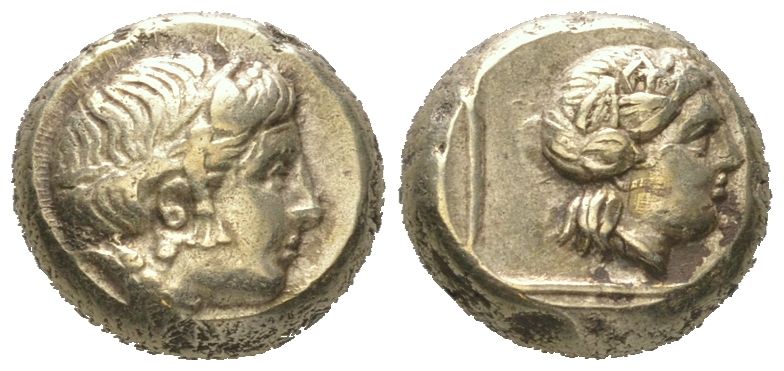 ---о-в Лесбос, Митилена гекта (1/6 статера) 417-378 гг. до н.э. голова Ио/голова Диониса, 2,55 гр, ex. Kuenker 2011 год Bodenstedt 77 электр 00-000-00