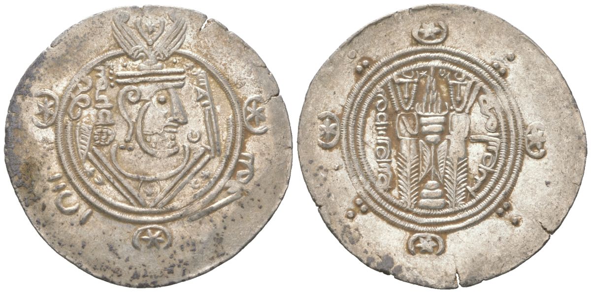 Аббасидский Халифат 1/2 дирхема 771 - 791 Табаристан, голова правителя/два огнепоклонника, extremely fine серебро 1073-18-34