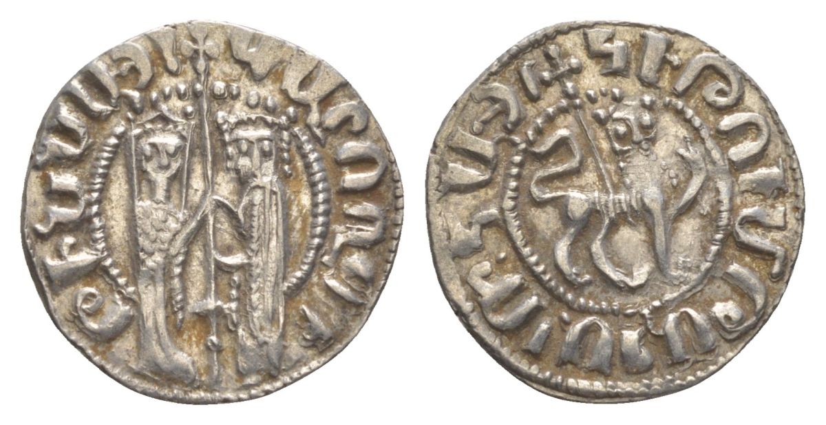 Киликийская Армения трам 1226-1271 Хетум I и царица Забель, держат крест/лев с патриаршим крестом серебро 1516-633