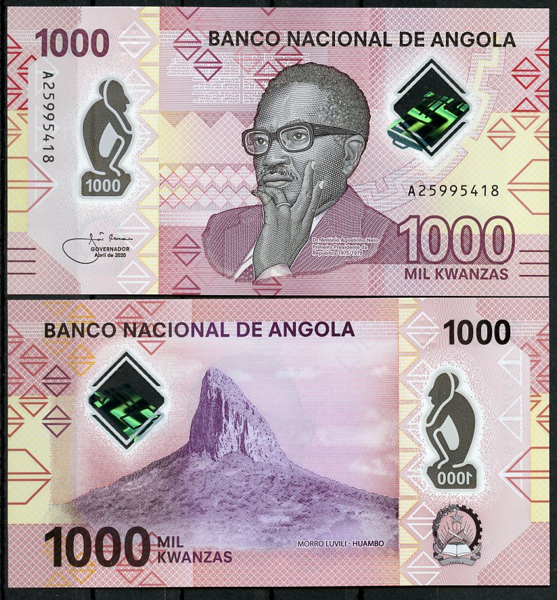 Ангола 1000 кванза 2020 Антонио Агостиньо Нето, Пик Лувили, Уамбо Pick 162 пластик UNC (пресс) 449-89-3