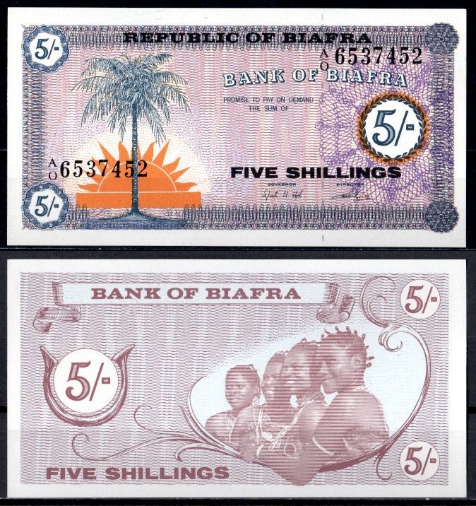 -Биафра 5 шиллингов ND (1968) Pick 1 бумага UNC (пресс) 7214-25-1-2УгандаМавританияМадагаскарМалавиМароккоМозамбикНигерияРуандаСвазилендСуданСьерра-ЛеонеТанзанияТунисМаврикийФранцузская Западная АфрикаФранцузская Экваториальная АфрикаЭкваториальная ГвинеяЭритреяЭфиопияЮАРДругие страныГвинея-БисауЛесотоКоморские островаСомалиСан-Томе и ПринсипиБурундиАлжирАнголаБотсванаЛивияГамбияГанаГвинеяЕгипетЗаирЗамбияЗимбабвеКабо-ВердеКенияКонгоЛиберия