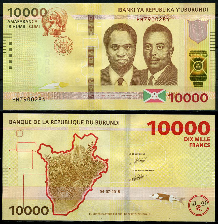 -Бурунди 10000 франков 2018 принц Рвагасоре, президент Мельхиор Ндадайе, карта Pick 54 (2) бумага UNC (пресс) 448-117-3УгандаМавританияМадагаскарМалавиМароккоМозамбикНигерияРуандаСвазилендСуданСьерра-ЛеонеТанзанияТунисМаврикийФранцузская Западная АфрикаФранцузская Экваториальная АфрикаЭкваториальная ГвинеяЭритреяЭфиопияЮАРДругие страныГвинея-БисауЛесотоКоморские островаСомалиСан-Томе и ПринсипиАлжирАнголаБиафраБотсванаЛивияГамбияГанаГвинеяЕгипетЗаирЗамбияЗимбабвеКабо-ВердеКенияКонгоЛиберия