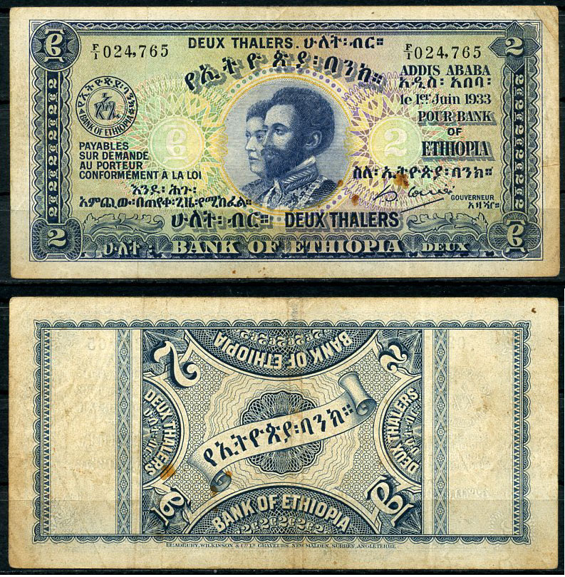 Эфиопия 2 талера 1933 Император Хайле Селассие I и императрица Заудита Pick 6 a бумага 451-339-2