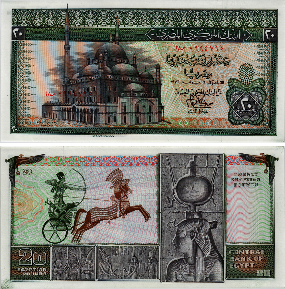 Египет 20 фунтов 1976 мечеть Мухаммеда Али в Каире, боевая колесница, статуя богини Исиды Pick 48 бумага UNC (пресс) 6289-37-3-1