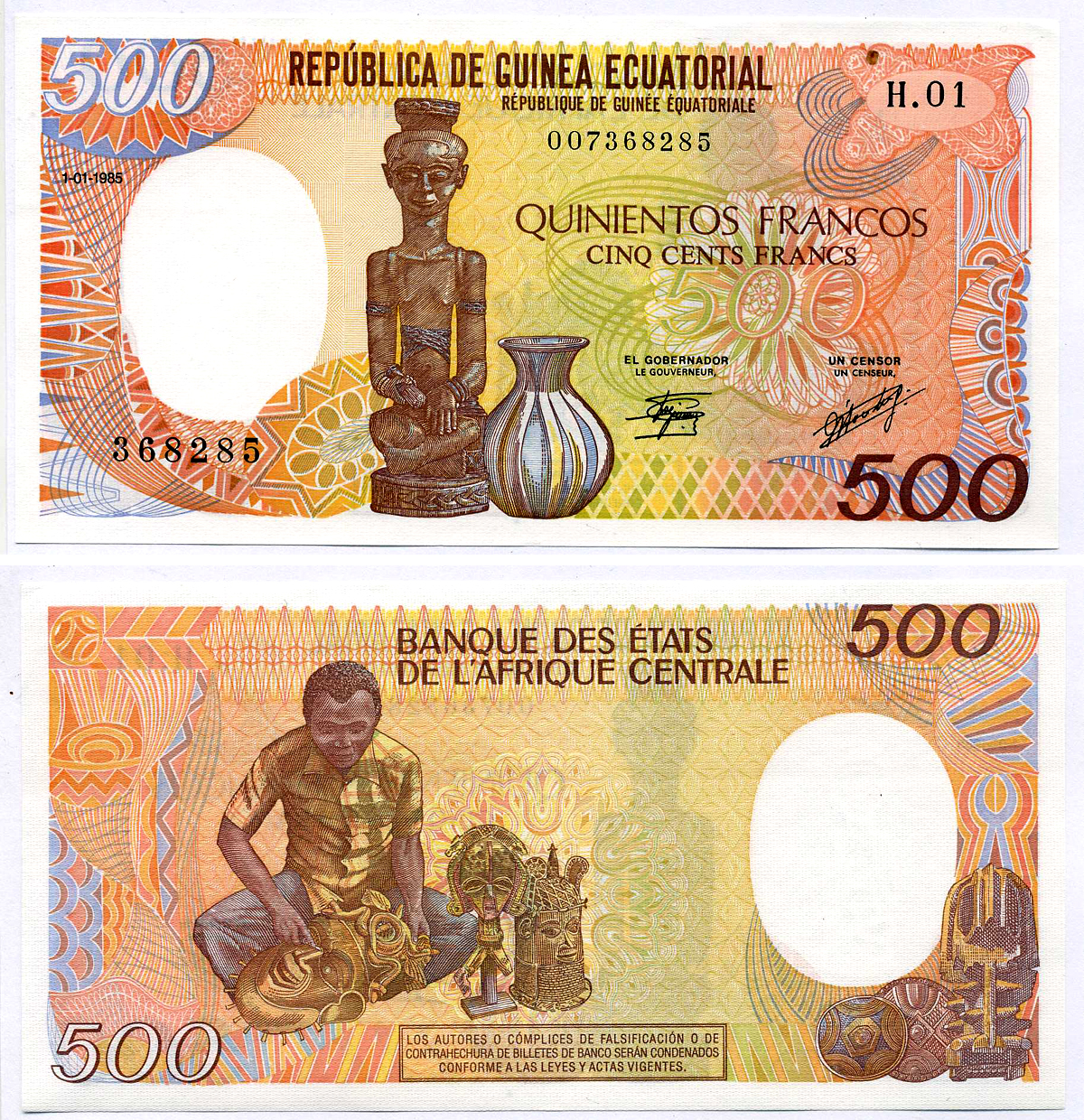 -ЭКВАТОРИАЛЬНАЯ ГВИНЕЯ 500 франков 1985 1 января 1985 Pick 20 бумага aUNC 445-18-1УгандаМавританияМадагаскарМалавиМароккоМозамбикНигерияРуандаСвазилендСуданСьерра-ЛеонеТанзанияТунисМаврикийФранцузская Западная АфрикаФранцузская Экваториальная АфрикаЭритреяЭфиопияЮАРДругие страныГвинея-БисауЛесотоКоморские островаСомалиСан-Томе и ПринсипиБурундиАлжирАнголаБиафраБотсванаЛивияГамбияГанаГвинеяЕгипетЗаирЗамбияЗимбабвеКабо-ВердеКенияКонгоЛиберия