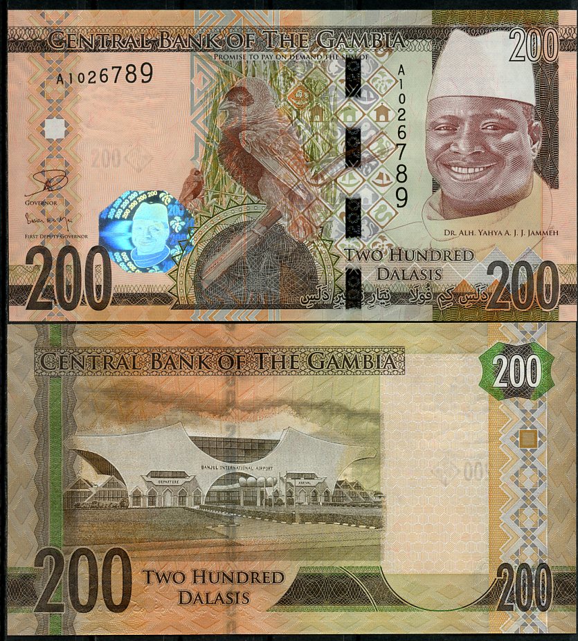 Гамбия 200 даласи ND (2015) Яйя Джамме, международный аэропорт Банжула Pick 36 a бумага UNC (пресс) 448-14-3