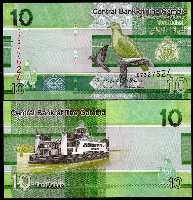 Гамбия 5, 10, 20, 50, 100 и 200 даласи 2023 серия птиц Pick 37, 38, 39, 40, 41, 42 бумага UNC (пресс) 448-14-1-2