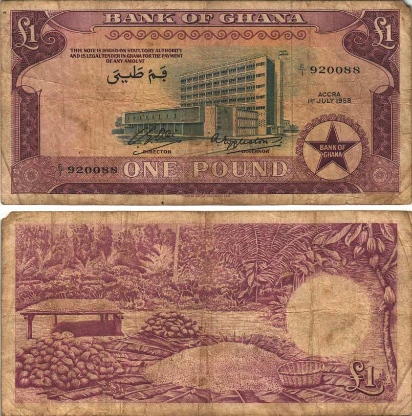 -ГАНА 1 ФУНТ 1958 1 ИЮЛЯ 1958, ЗДАНИЕ БАНКА ГАНЫ, ПЛАНТАЦИЯ КАКАО БОБОВ, TDLR Pick 2a бумага 6299-51-2-2УгандаМавританияМадагаскарМалавиМароккоМозамбикНигерияРуандаСвазилендСуданСьерра-ЛеонеТанзанияТунисМаврикийФранцузская Западная АфрикаФранцузская Экваториальная АфрикаЭкваториальная ГвинеяЭритреяЭфиопияЮАРДругие страныГвинея-БисауЛесотоКоморские островаСомалиСан-Томе и ПринсипиБурундиАлжирАнголаБиафраБотсванаЛивияГамбияГвинеяЕгипетЗаирЗамбияЗимбабвеКабо-ВердеКенияКонгоЛиберия