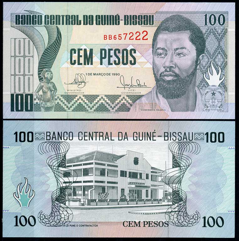 Гвинея-Бисау 100 песо 1990 Домингос Рамос, Национальный Банк, 1 марта 1990 Pick 11 бумага UNC (пресс) 448-150-2