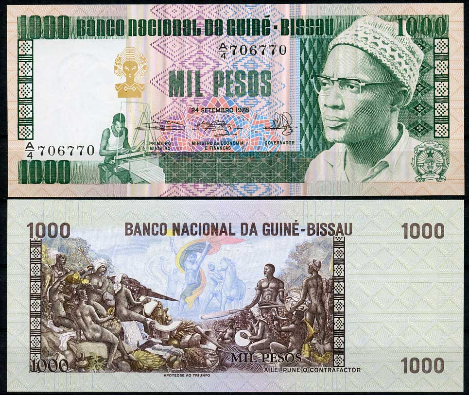 -----Гвинея-Бисау 1000 песо 1978 Амилкар Кабрал, Апофеоз к триумфу, 1 марта 1990 Pick 8 b бумага UNC (пресс) 448-163-2