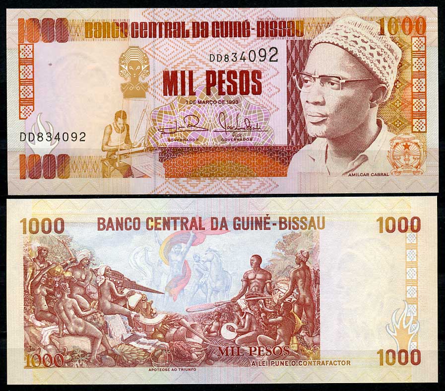 Гвинея-Бисау 1000 песо 1993 Амилкар Кабрал, Апофеоз к триумфу, 1 марта 1993 Pick 13 b бумага UNC (пресс) 448-180-3
