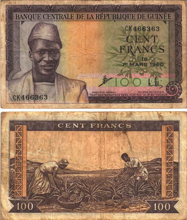 -ГВИНЕЯ 100 ФРАНКОВ 1960 1 МАРТА 1960, ПРЕЗИДЕНТ АХМЕД СЕКУ ТУРЕ, СБОР АНАНАСОВ Pick 13а бумага 7116-44-1-2УгандаМавританияМадагаскарМалавиМароккоМозамбикНигерияРуандаСвазилендСуданСьерра-ЛеонеТанзанияТунисМаврикийФранцузская Западная АфрикаФранцузская Экваториальная АфрикаЭкваториальная ГвинеяЭритреяЭфиопияЮАРДругие страныГвинея-БисауЛесотоКоморские островаСомалиСан-Томе и ПринсипиБурундиАлжирАнголаБиафраБотсванаЛивияГамбияГанаЕгипетЗаирЗамбияЗимбабвеКабо-ВердеКенияКонгоЛиберия