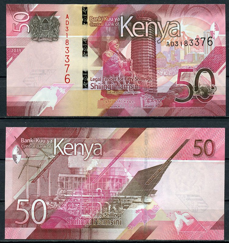 Кения 50 шиллингов 2019 Статуя Кениаты и международный конференц-центр Кениаты, Найроби, возобновляемая энергия Pick new бумага UNC (пресс) 448-158-1