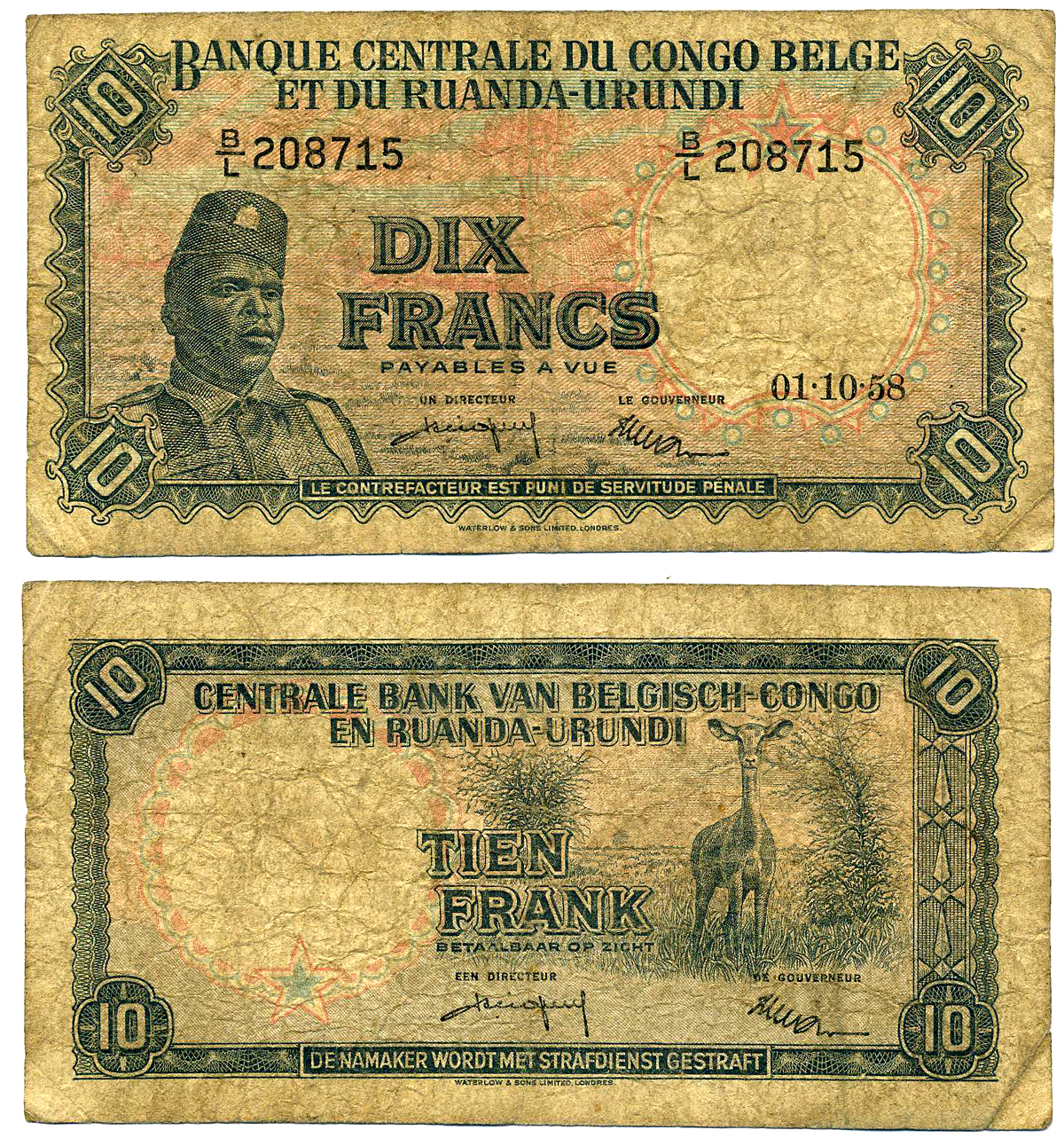-Бельгийское Конго 10 франков 1958 1 октября 1958, Солдат "Общественных сил" (Аскари), антилопа Pick 30 b бумага 2119-8-2-1УгандаМавританияМадагаскарМалавиМароккоМозамбикНигерияРуандаСвазилендСуданСьерра-ЛеонеТанзанияТунисМаврикийФранцузская Западная АфрикаФранцузская Экваториальная АфрикаЭкваториальная ГвинеяЭритреяЭфиопияЮАРДругие страныГвинея-БисауЛесотоКоморские островаСомалиСан-Томе и ПринсипиБурундиАлжирАнголаБиафраБотсванаЛивияГамбияГанаГвинеяЕгипетЗаирЗамбияЗимбабвеКабо-ВердеКенияЛиберия