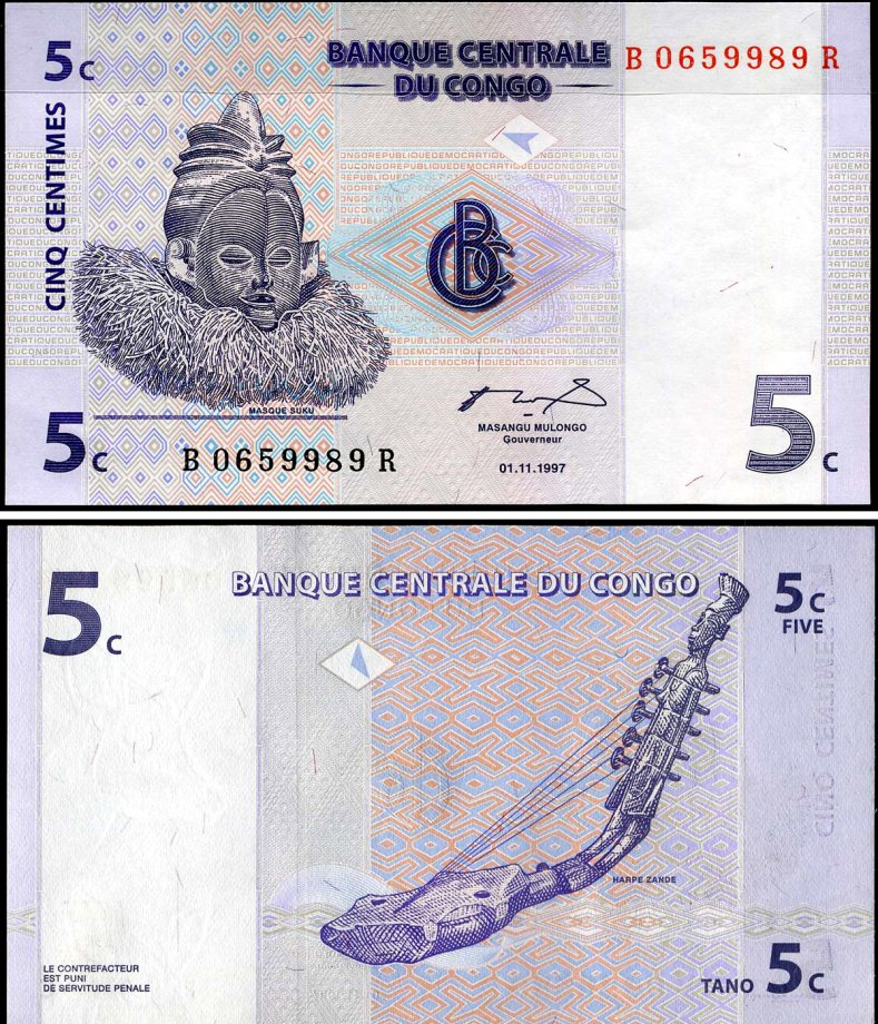 -ДР Конго 5 сантимов 1997 маска суку, музыкальный инструмент занде Pick 81 a бумага UNC (пресс) 7183-14-4-1УгандаМавританияМадагаскарМалавиМароккоМозамбикНигерияРуандаСвазилендСуданСьерра-ЛеонеТанзанияТунисМаврикийФранцузская Западная АфрикаФранцузская Экваториальная АфрикаЭкваториальная ГвинеяЭритреяЭфиопияЮАРДругие страныГвинея-БисауЛесотоКоморские островаСомалиСан-Томе и ПринсипиБурундиАлжирАнголаБиафраБотсванаЛивияГамбияГанаГвинеяЕгипетЗаирЗамбияЗимбабвеКабо-ВердеКенияЛиберия