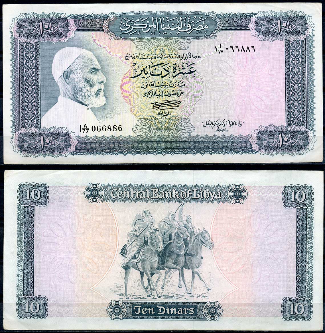 Ливия 10 динаров ND (1972) Омар Мухтар и его всадники Pick 37 b бумага 8618-54-1-1