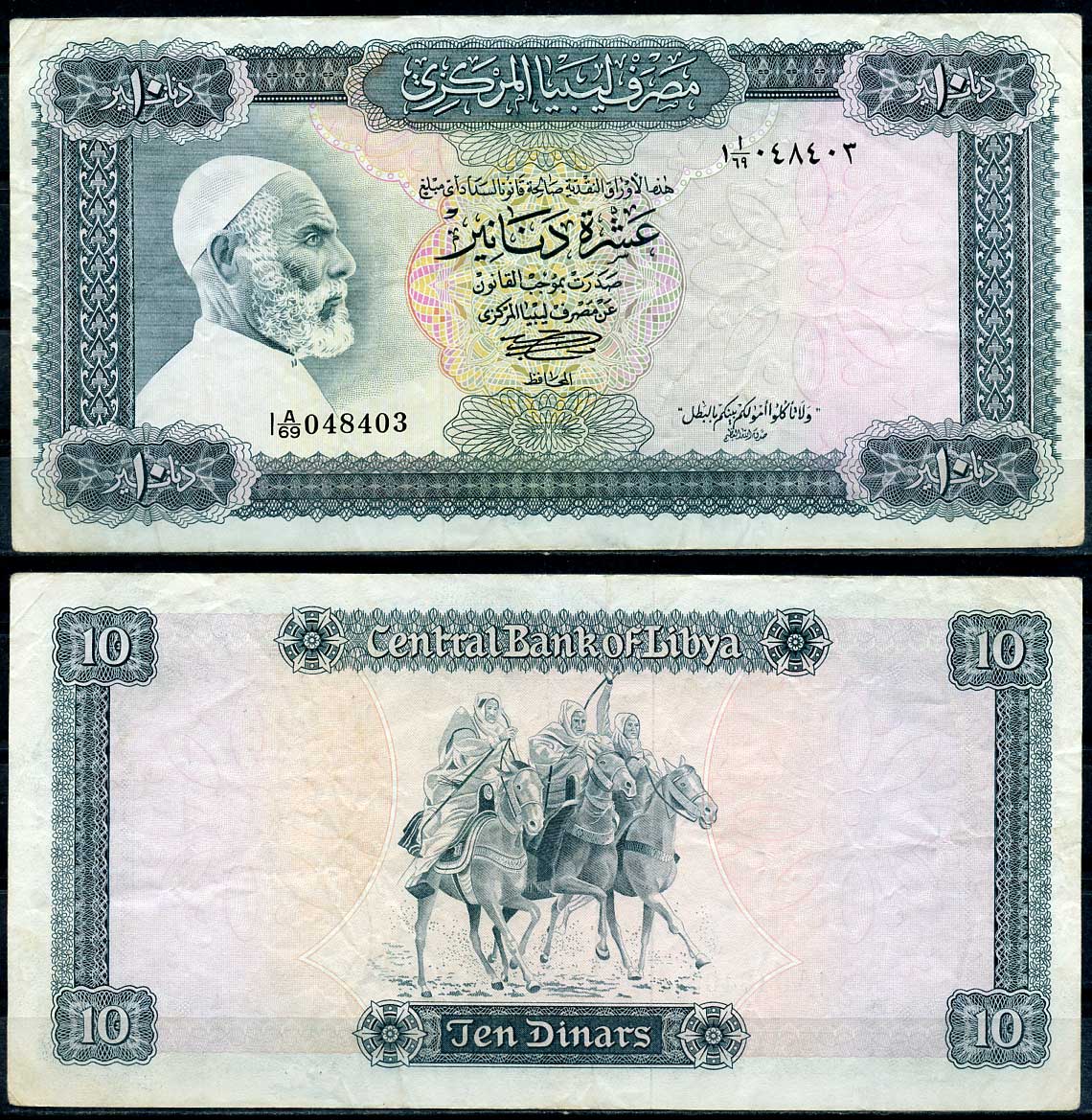 Ливия 10 динаров ND (1972) Омар Мухтар и его всадники Pick 37 b бумага 8618-7-1-1