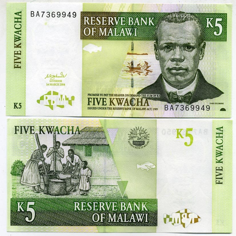 Малави 5 квача 2004 Джон Чилембве, озеро Малави Pick 36 b бумага UNC (пресс) 448-72-1