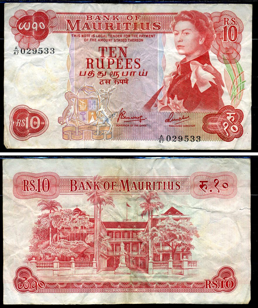 Маврикий 10 рупий ND (1967) Елизавета II, британская администрация, здание правительства Pick 31 c бумага 8619-17-1-1