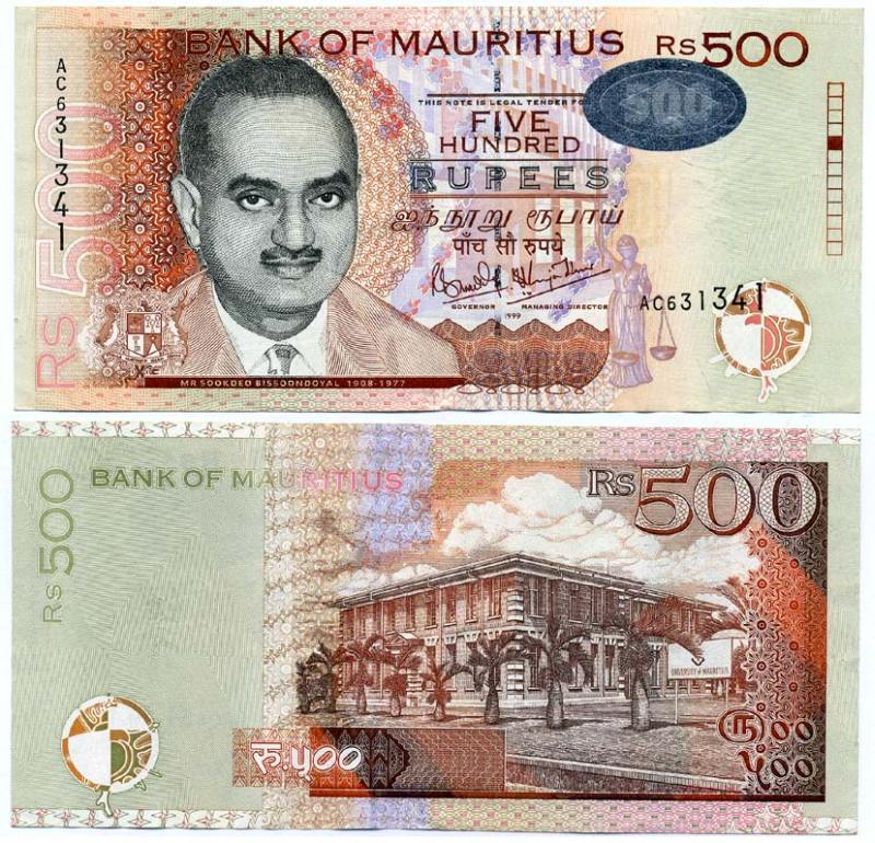 Маврикий 500 рупий 1999 Sookdeo Bissoondoyal Pick 53 а бумага 7221-38-1