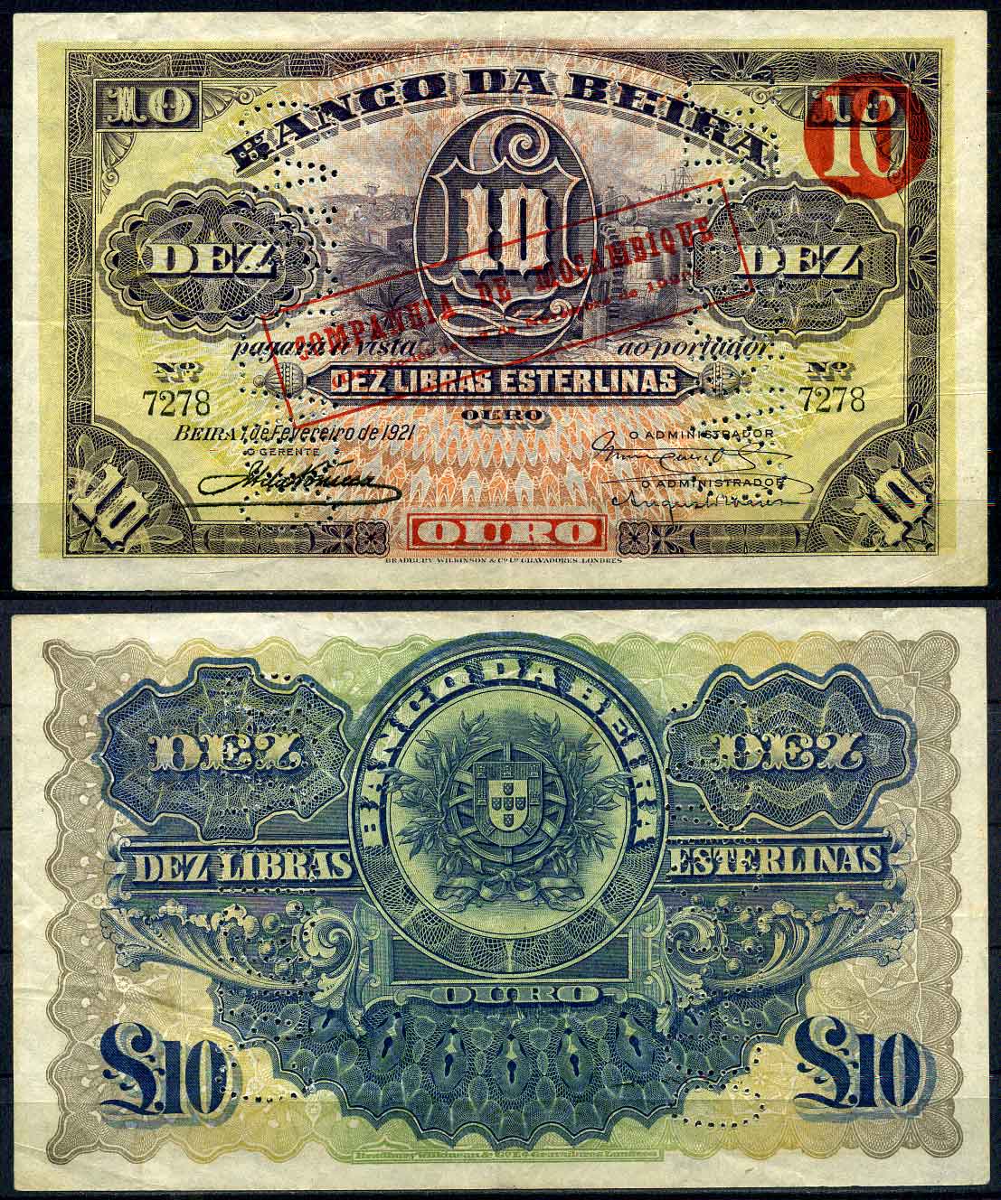 -Мозамбик, Португальский 10 либра эстерлино 1929 красная надпечатка на банкноте 1 февраля 1921, временный выпуск, Мозамбикская компания, OURO, перфорация CANCELADO Pick R22 бумага 10-2-25-1УгандаМавританияМадагаскарМалавиМароккоНигерияРуандаСвазилендСуданСьерра-ЛеонеТанзанияТунисМаврикийФранцузская Западная АфрикаФранцузская Экваториальная АфрикаЭкваториальная ГвинеяЭритреяЭфиопияЮАРДругие страныГвинея-БисауЛесотоКоморские островаСомалиСан-Томе и ПринсипиБурундиАлжирАнголаБиафраБотсванаЛивияГамбияГанаГвинеяЕгипетЗаирЗамбияЗимбабвеКабо-ВердеКенияКонгоЛиберия
