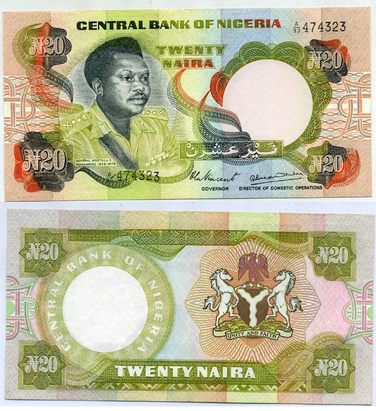Нигерия 20 найра ND (1977-1984) Муртала Мухаммед Pick 18 с бумага 448-104-1-1