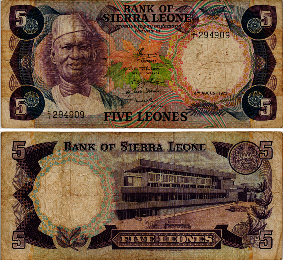 -Сьерра-Леоне 5 леоне 1975 Сиака Стивенс, серия С/1 Pick 7а бумага 7457-54-3-2УгандаМавританияМадагаскарМалавиМароккоМозамбикНигерияРуандаСвазилендСуданТанзанияТунисМаврикийФранцузская Западная АфрикаФранцузская Экваториальная АфрикаЭкваториальная ГвинеяЭритреяЭфиопияЮАРДругие страныГвинея-БисауЛесотоКоморские островаСомалиСан-Томе и ПринсипиБурундиАлжирАнголаБиафраБотсванаЛивияГамбияГанаГвинеяЕгипетЗаирЗамбияЗимбабвеКабо-ВердеКенияКонгоЛиберия