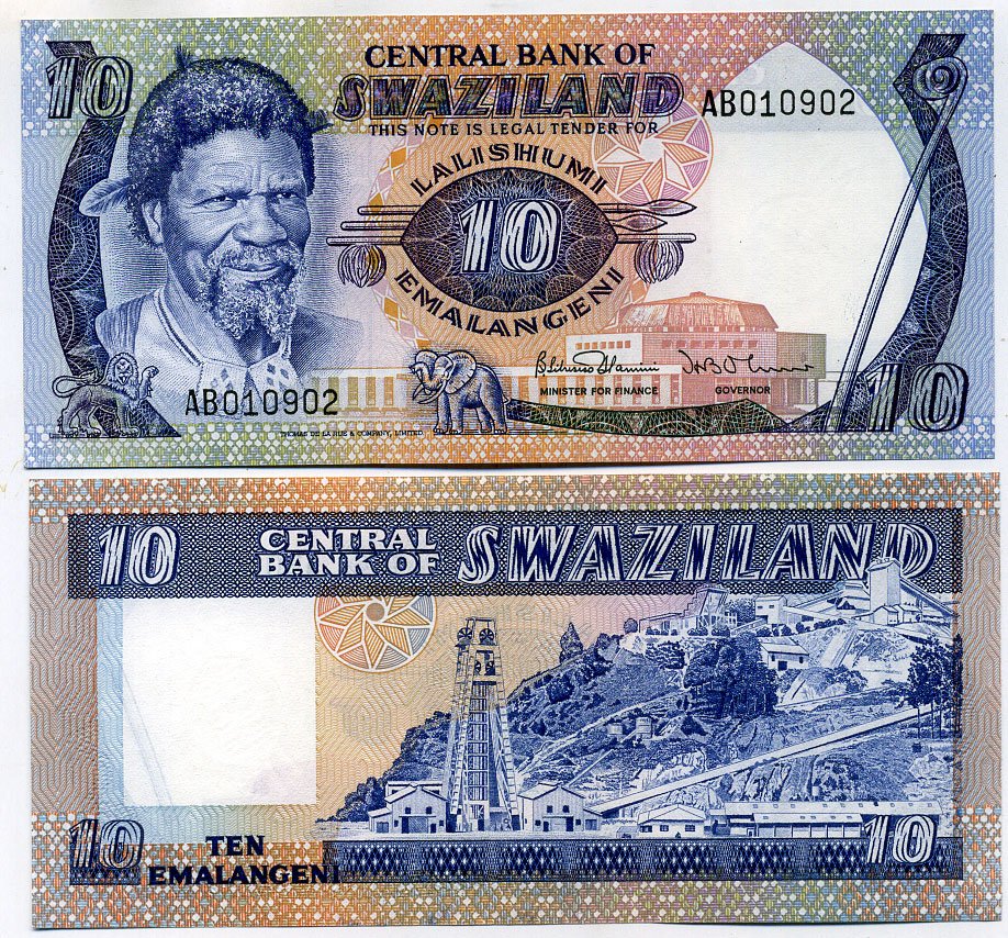 Свазиленд 10 емалангени ND (1985) король Собуза II, асбестовая шахта Pick 16 c бумага UNC (пресс) 448-145-1
