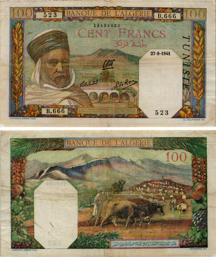 -ТУНИС 100 ФРАНКОВ 1941 НАДПЕЧАТКА НА ФРАНЦУЗСКОМ АЛЖИРЕ, 27 СЕНТЯБРЯ 1941 Pick 13а бумага 6294-66-2УгандаМавританияМадагаскарМалавиМароккоМозамбикНигерияРуандаСвазилендСуданСьерра-ЛеонеТанзанияМаврикийФранцузская Западная АфрикаФранцузская Экваториальная АфрикаЭкваториальная ГвинеяЭритреяЭфиопияЮАРДругие страныГвинея-БисауЛесотоКоморские островаСомалиСан-Томе и ПринсипиБурундиАлжирАнголаБиафраБотсванаЛивияГамбияГанаГвинеяЕгипетЗаирЗамбияЗимбабвеКабо-ВердеКенияКонгоЛиберия
