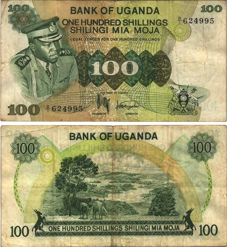 -Уганда 100 шиллингов ND (1973) серия D/1, президент Иди Амин, Governor and Director, ландшафт Pick 9a бумага VF 7116-37-3-1МавританияМадагаскарМалавиМароккоМозамбикНигерияРуандаСвазилендСуданСьерра-ЛеонеТанзанияТунисМаврикийФранцузская Западная АфрикаФранцузская Экваториальная АфрикаЭкваториальная ГвинеяЭритреяЭфиопияЮАРДругие страныГвинея-БисауЛесотоКоморские островаСомалиСан-Томе и ПринсипиБурундиАлжирАнголаБиафраБотсванаЛивияГамбияГанаГвинеяЕгипетЗаирЗамбияЗимбабвеКабо-ВердеКенияКонгоЛиберия