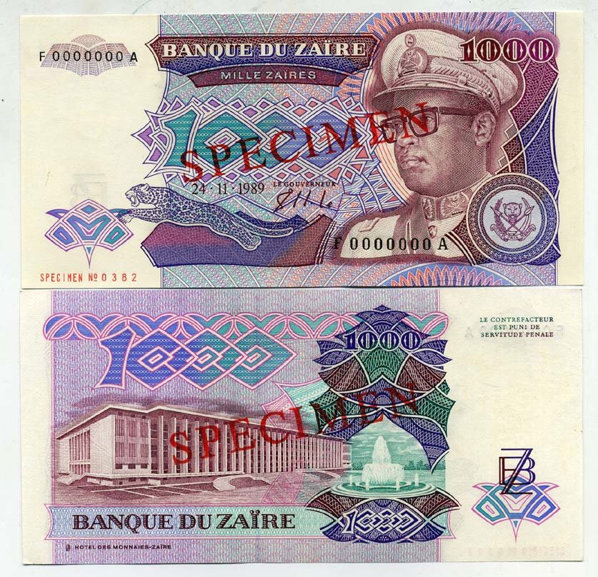 -Заир 1000 заиров 1989 Мобуту Сесе Секо в военной форме, народный дворец. Образец, Specimen Pick 35s бумага UNC (пресс) 448-40-1УгандаМавританияМадагаскарМалавиМароккоМозамбикНигерияРуандаСвазилендСуданСьерра-ЛеонеТанзанияТунисМаврикийФранцузская Западная АфрикаФранцузская Экваториальная АфрикаЭкваториальная ГвинеяЭритреяЭфиопияЮАРДругие страныГвинея-БисауЛесотоКоморские островаСомалиСан-Томе и ПринсипиБурундиАлжирАнголаБиафраБотсванаЛивияГамбияГанаГвинеяЕгипетЗамбияЗимбабвеКабо-ВердеКенияКонгоЛиберия