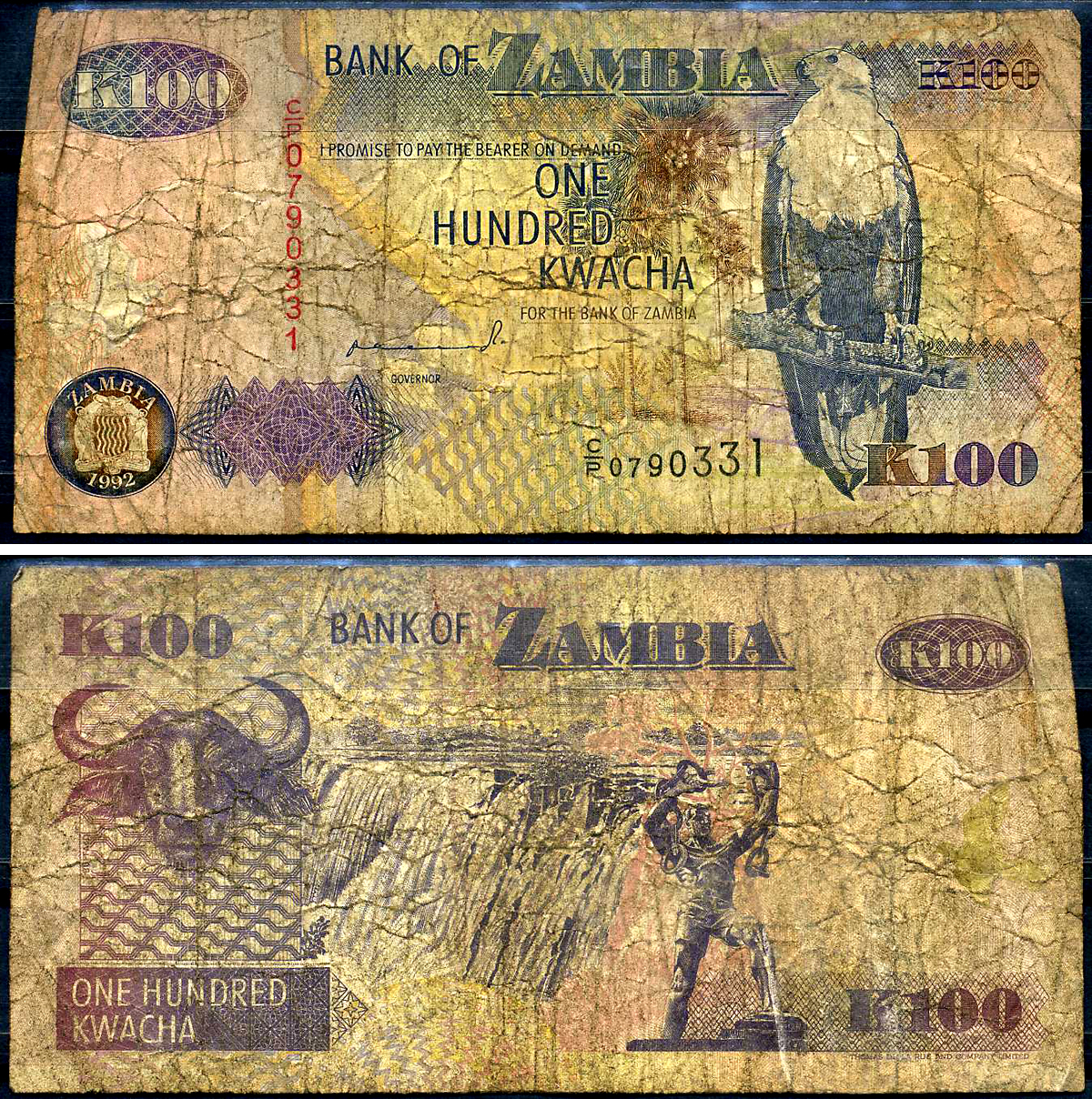 Замбия 100 квач 1992 Pick 38 a бумага 7548-85-1-2