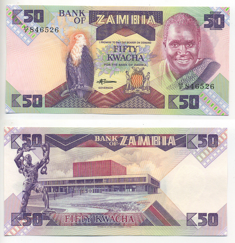 ЗАМБИЯ 50 КВАЧА 1986-1988 ПОДПИСЬ 7 Pick 28a бумага UNC (ПРЕСС) 2192-50-3