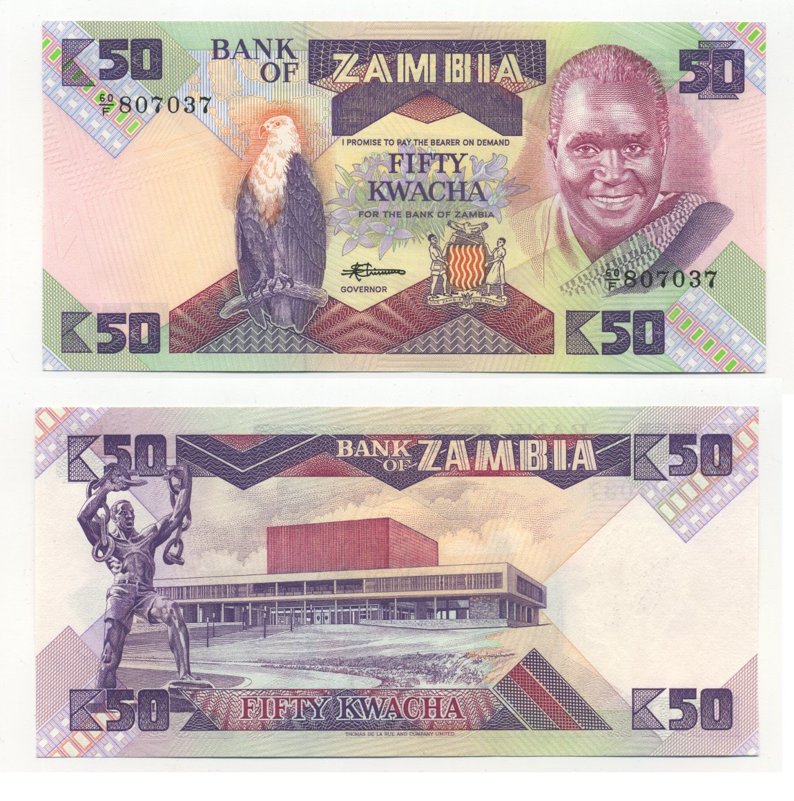 Замбия 50 квач ND (1986-1988) Кеннет Каунда, национальное собрание, Лусака Pick 28 а бумага UNC (пресс) 7204-27-2
