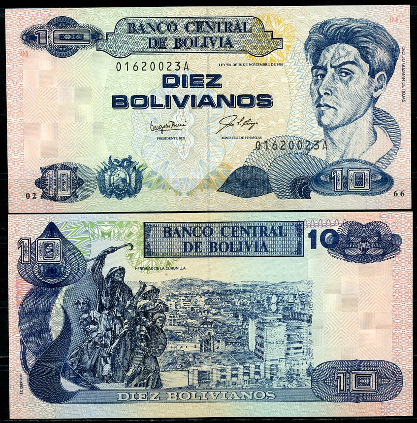 -Боливия 10 боливиано 1986 (1987-2001) серия A, Сесилио Гусман де Рохас Pick 204 a бумага UNC (пресс) 451-776-1АргентинаСШАКолумбияКоста-РикаКубаМексикаНидерландские АнтилыНикарагуаПарагвайПеруСуринамКанадаТринидад и ТобагоУругвайЧилиЭквадорЯмайкаВосточно-Карибские штатыГренландияКаймановы островаБермудские острова (Бермуды)Багамские островаДоминиканская РеспубликаБарбадосБелизБразилияВенесуэлаГаитиГайанаГватемалаГондурасДругие страны