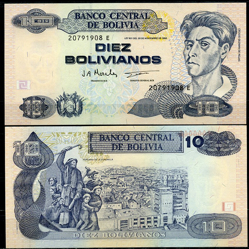 -Боливия 10 боливиано 1986 (1987-2001) серия E, Сесилио Гусман де Рохас Pick 204 c бумага UNC (пресс) 7202-6-2АргентинаСШАКолумбияКоста-РикаКубаМексикаНидерландские АнтилыНикарагуаПарагвайПеруСуринамКанадаТринидад и ТобагоУругвайЧилиЭквадорЯмайкаВосточно-Карибские штатыГренландияКаймановы островаБермудские острова (Бермуды)Багамские островаДоминиканская РеспубликаБарбадосБелизБразилияВенесуэлаГаитиГайанаГватемалаГондурасДругие страны