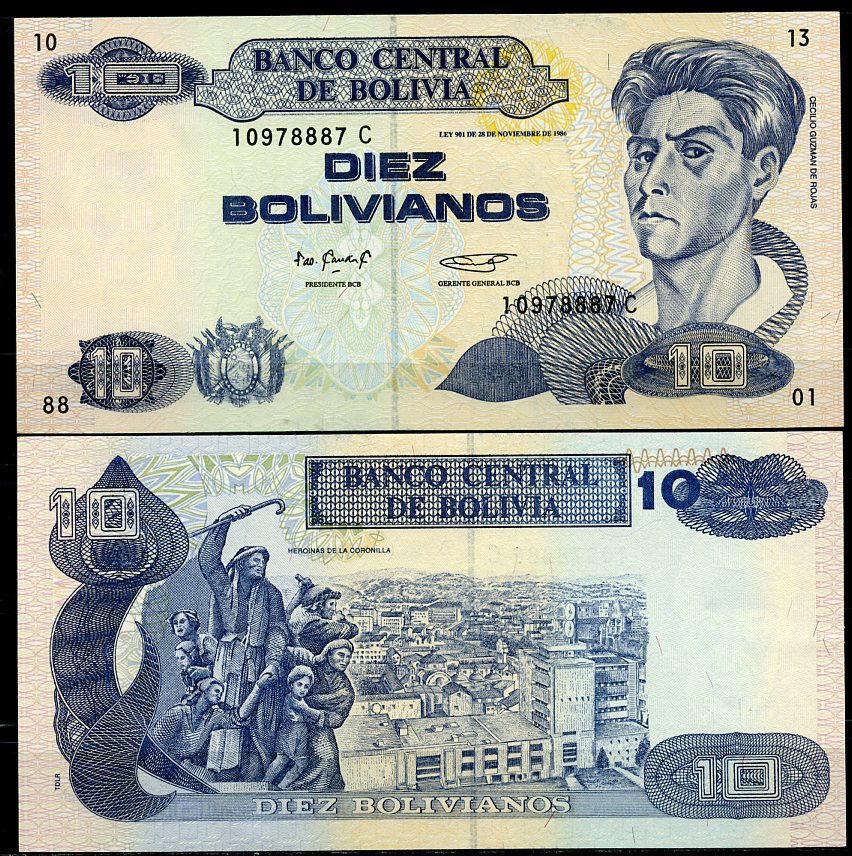 -Боливия 10 боливиано 1986 (1995) серия C, Сесилио Гусман де Рохас, TDLR Pick 216 a бумага UNC (пресс) 451-778-1АргентинаСШАКолумбияКоста-РикаКубаМексикаНидерландские АнтилыНикарагуаПарагвайПеруСуринамКанадаТринидад и ТобагоУругвайЧилиЭквадорЯмайкаВосточно-Карибские штатыГренландияКаймановы островаБермудские острова (Бермуды)Багамские островаДоминиканская РеспубликаБарбадосБелизБразилияВенесуэлаГаитиГайанаГватемалаГондурасДругие страны