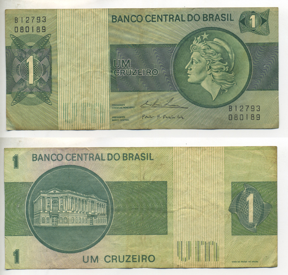 БРАЗИЛИЯ 1 КРУЗЕЙРО 1975 СЕРИЯ В 12793, ПОДПИСЬ 18, ГОЛОВА СВОБОДЫ Pick 191Аb бумага 6266-38-2-2