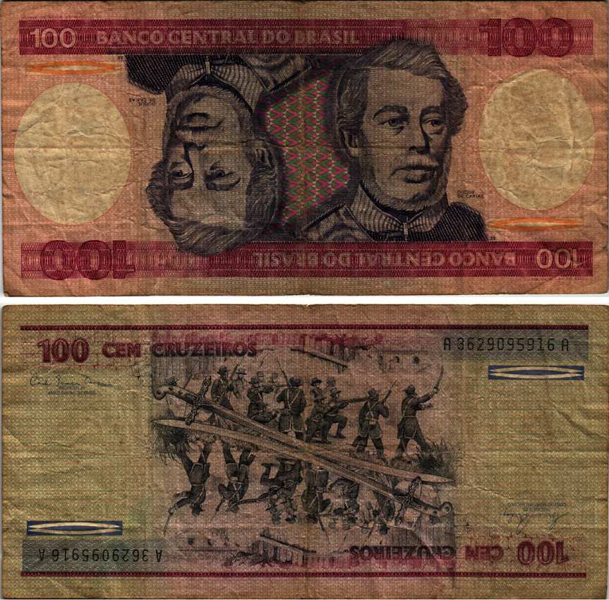 Бразилия 100 крузейро 1981 подпись 20, Герцог Каксиас Pick 198a бумага 7221-21-2-2